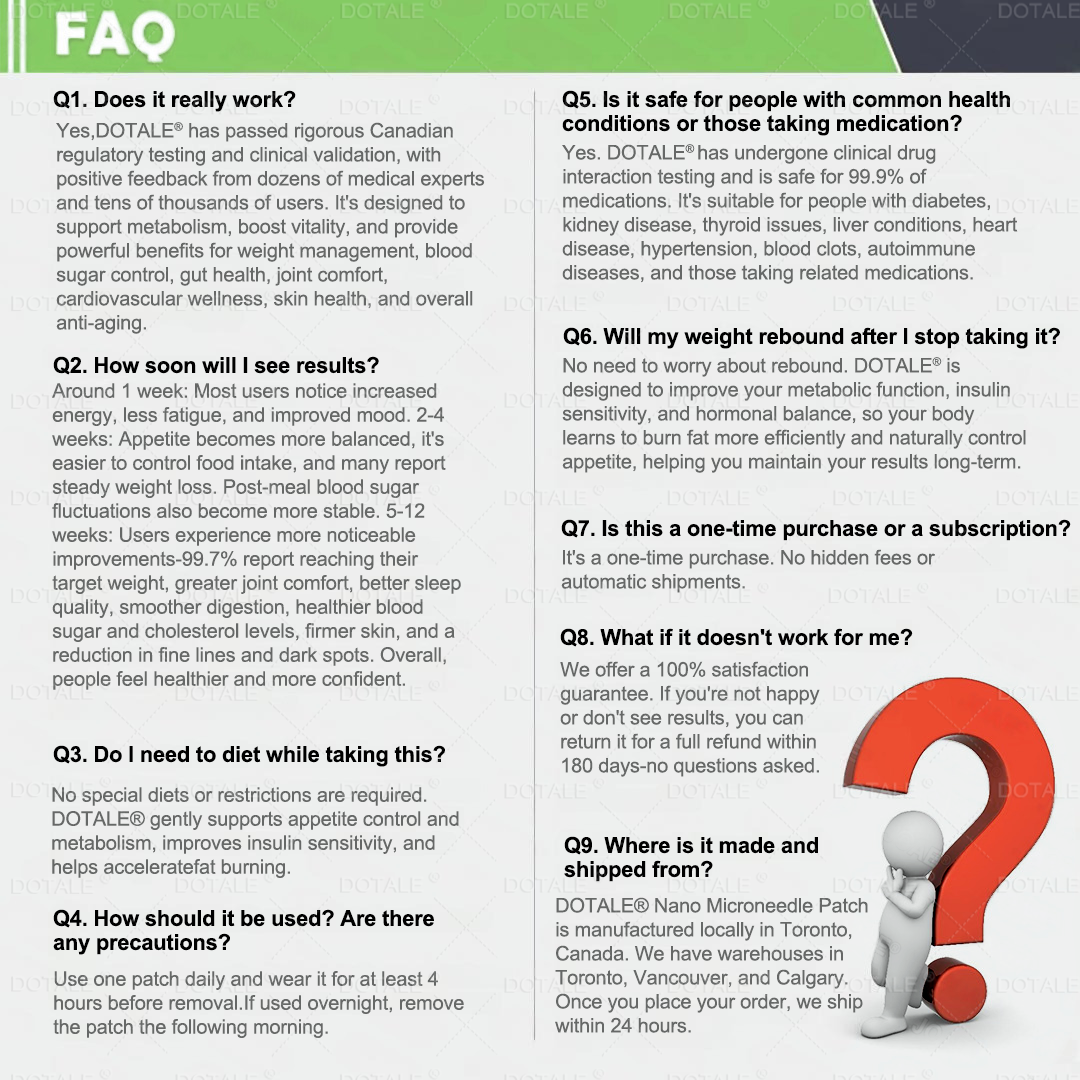 “We are an endocrinology research team affiliated in Canada, and many of us have personally experienced obesity and its associated complications. Over the years, we have also evaluated commonly available weight-loss interventions on the market, including injectable therapies, capsules, and Oral weight-loss pills. However, their outcomes were often limited, and many were accompanied by tolerability concerns. These experiences motivated us to develop a safer, more natural, and more effective approach to metabolic health and weight management. After more than 12 years of research, our team initiated self-testing of this program, successfully overcoming the limitations of traditional single-pathway interventions that frequently cause gastrointestinal side effects. By adopting a dual-pathway strategy—supporting appetite regulation and fat metabolism while also addressing post-weight-loss skin firmness—we observed significant improvements in body weight and metabolic health, without rebound weight gain or adverse reactions. Subsequently, we conducted large-scale studies and clinical trials involving more than 5,000 participants, further validating the performance of 𝑫𝑶𝑻𝑨𝑳𝑬® 𝑴𝒆𝒕𝒂𝒃𝒐𝒍𝒊𝒄 𝑵𝒂𝒏𝒐 𝑴𝒊𝒄𝒓𝒐𝒏𝒆𝒆𝒅𝒍𝒆 𝑷𝒂𝒕𝒄𝒉 in metabolic regulation, appetite control, and overall health outcomes. These benefits were particularly pronounced among overweight or obese adults over the age of 40. Supported by contemporary medical research, 𝑫𝑶𝑻𝑨𝑳𝑬® 𝑴𝒆𝒕𝒂𝒃𝒐𝒍𝒊𝒄 𝑵𝒂𝒏𝒐 𝑴𝒊𝒄𝒓𝒐𝒏𝒆𝒆𝒅𝒍𝒆 𝑷𝒂𝒕𝒄𝒉 has undergone rigorous Canadian regulatory review and evaluation, with its safety, effectiveness, and compliance formally recognized. This formulation represents a scientific advancement beyond conventional weight-loss products that are often associated with significant gastrointestinal burden, offering a natural, safe, and effective option for individuals seeking comprehensive metabolic support and sustainable long-term weight management.”