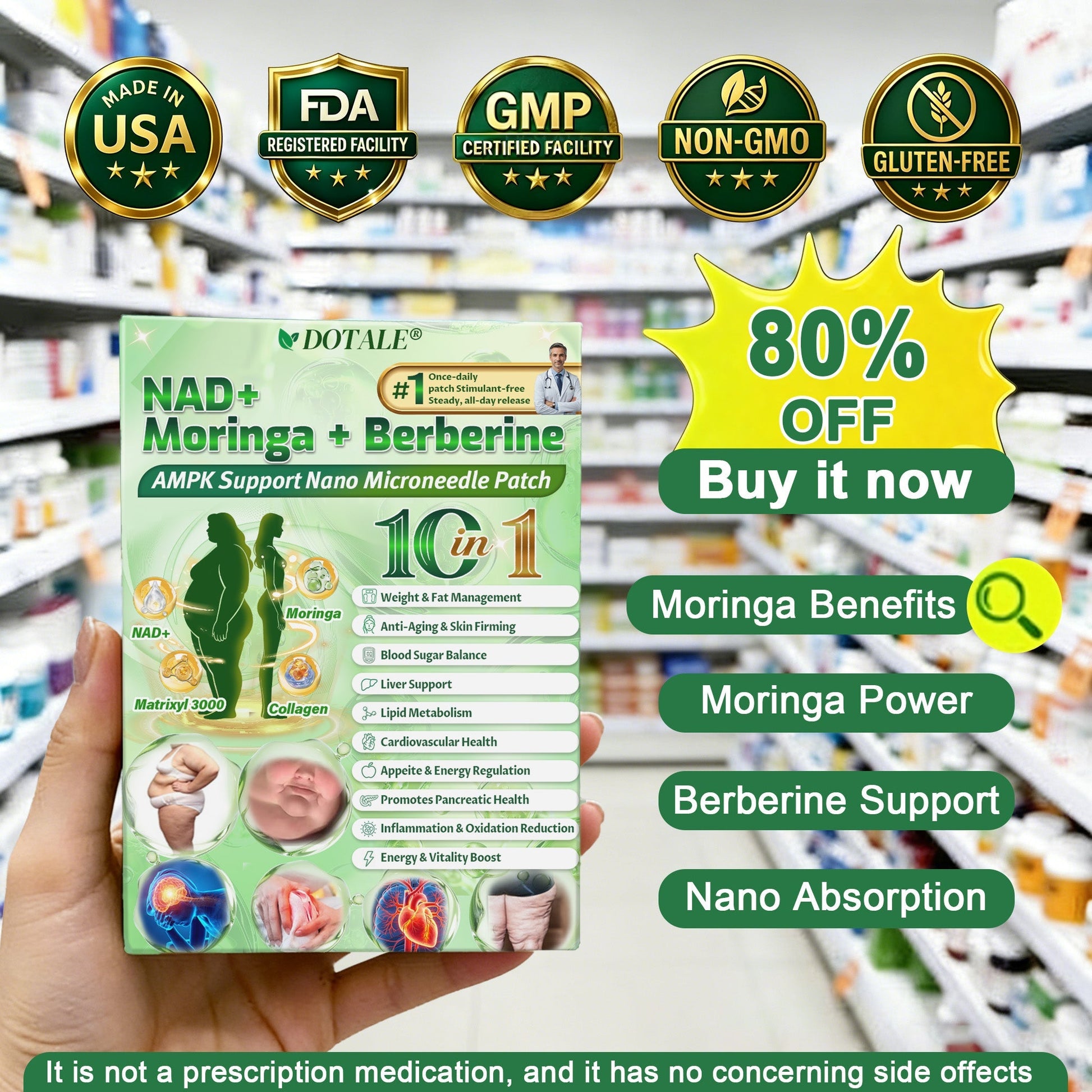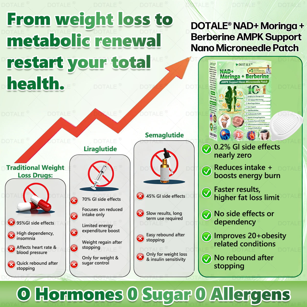 This advanced patch is formulated to support healthy weight loss, balance blood sugar, boost metabolism, and promote overall vitality, all through a simple, convenient, and non-invasive approach.
